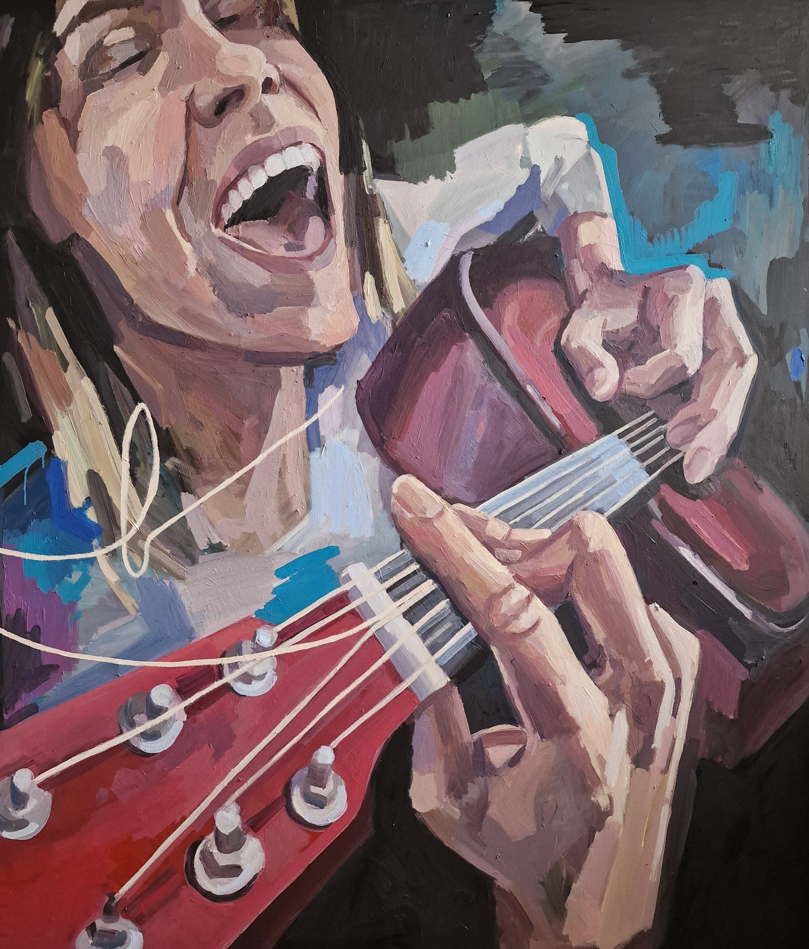 Slavinskaitė describes her work as reflective, emotional, and personal, yet aims for her pieces to resonate with the viewer, inviting them into the interpretive process. In her paintings, observations and experiences are not directly replicated from reality – they are visual representations of thought, where processes of consciousness intertwine with emotional impressions.